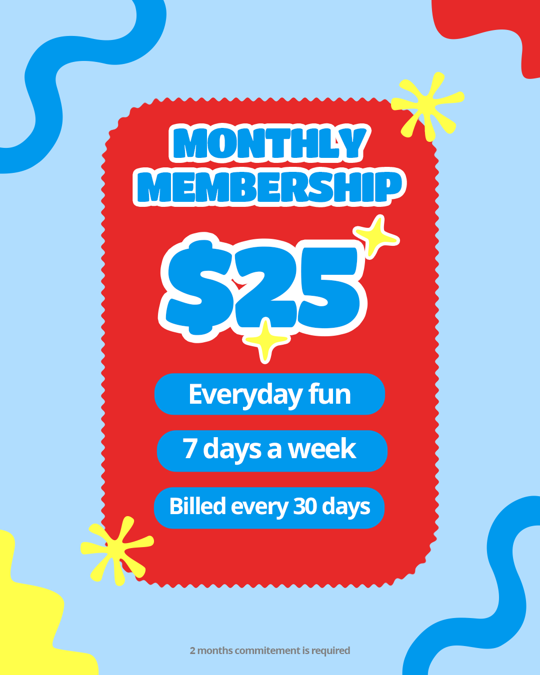 Enjoy 2 hours of unlimited play every day for just $25/month — available exclusively at your chosen Yoyo’s location.