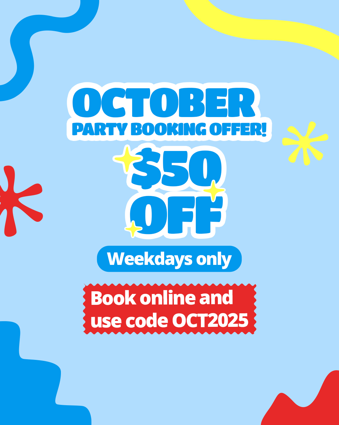 Get $50 OFF Your Weekday Party – This October Only!